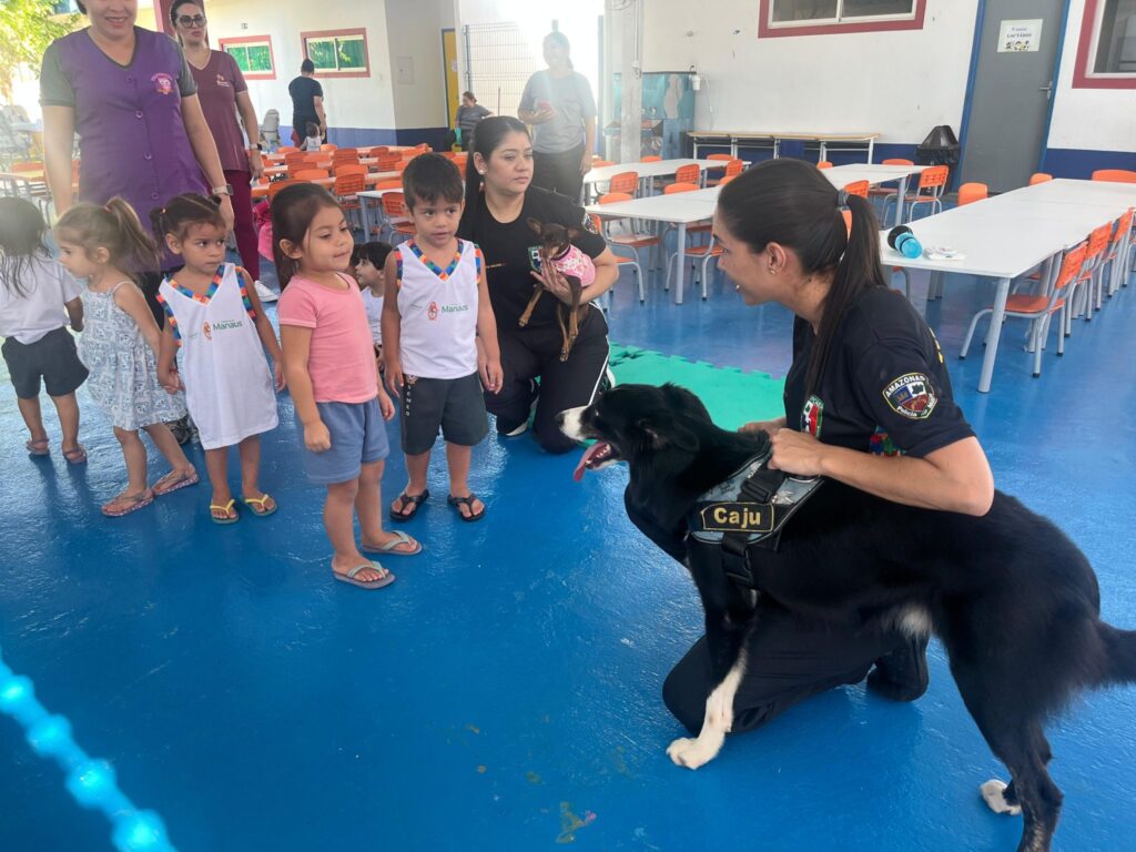 Creche da Prefeitura de Manaus recebe ação da Cinoterapia para auxiliar o desenvolvimento dos estudantes