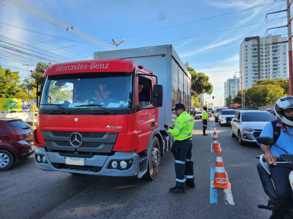 Prefeitura fiscaliza tráfego de veículos pesados na avenida Mário Ypiranga Monteiro
